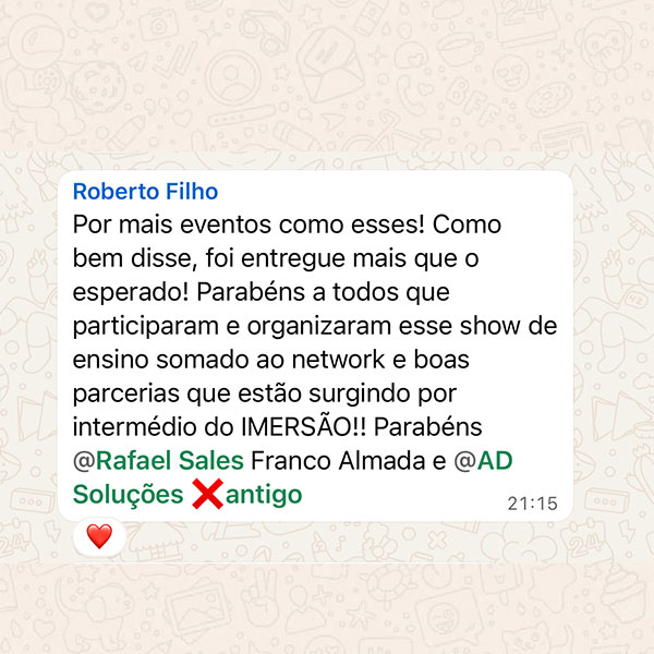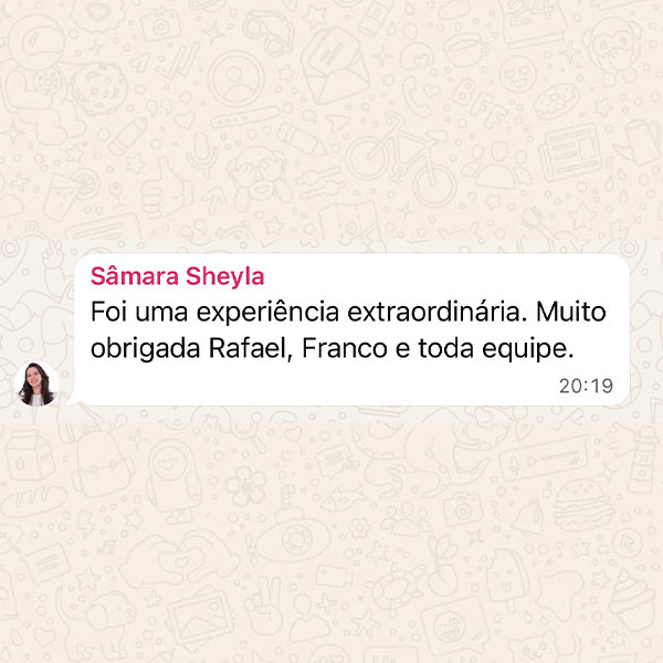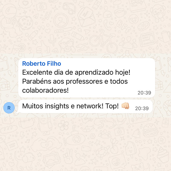 Não. A proposta é imersiva e presencial, para que você viva a experiência completa e saia com resultados prontos para aplicar.